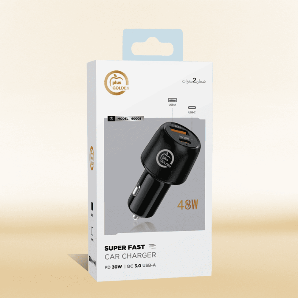 شاحن سياره منفذين سريع بقوة 48 واط ماركة جولدن بلاس